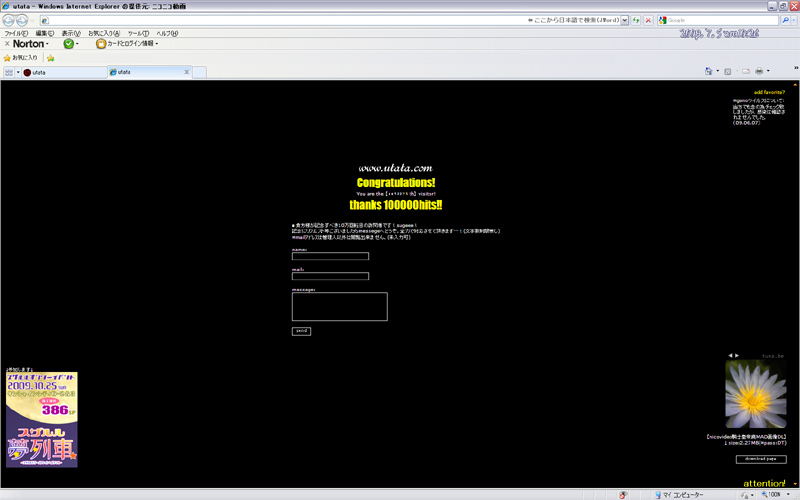 10万打を踏まれた場合には、TOPにメッセージ送信用の画面が表示される様になってますので、そちらからリクエストしていただければ有難いです^^